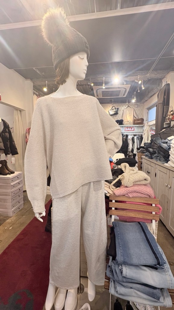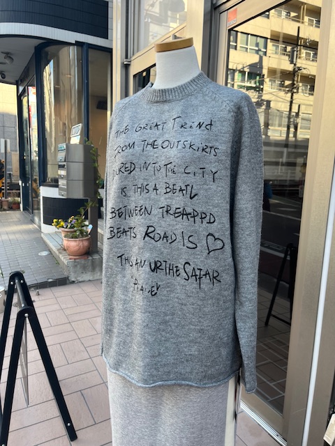 やさしいグレージュのニット。