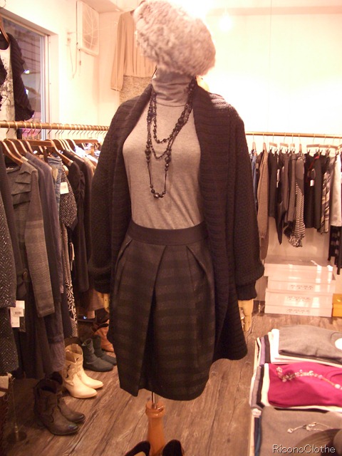 バルーンタイプのスカートは甘くなりがちですが、ロングの羽織で合わされるとバランスが良いです。
