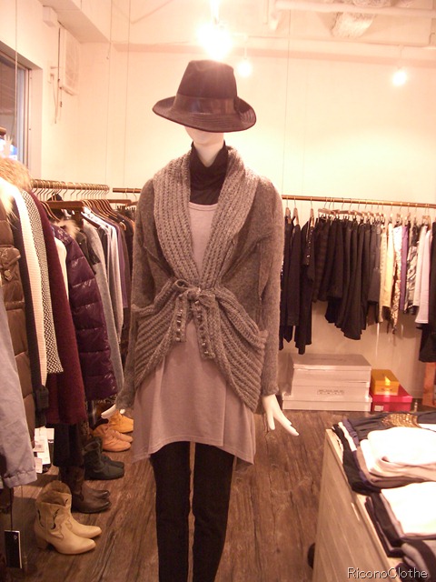 本日のコーディネイト 皆様今晩は!! 今日はお天気でお出かけ日和でしたね。 こんな日はコートではなくて、こんなおしゃれなインポートのニットはいかがでしょうか? カットソーのタートルにヒップが隠れる長めラインのチュニック, イタリアインポートのニットカーディガンを合わせてみました。 ハイウエストでマークするので足が長く見えてスタイルアップしてくれます。 お色はお写真のライトグレーとブラウンの2色展開です。 カットソーチュニック ¥6195 ニットカーデ ¥15750 2009年12月6日
