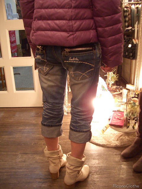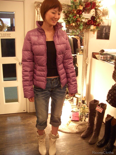 こちらのダウンジャケットなら暖かさは保障付きで、ロールアップのデニムに白い春ブーツを合わせたら、、、、
