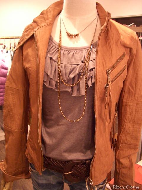 レザーのブルゾン入荷しました!! 柔らかい本革のライダースブルゾンが入荷しました。 革の質感や細かいディテールがおしゃれな一枚!! 真夏以外は通年使えるお役立ちアイテム。 お気に入りの一枚になる事間違い無しの一品です。 レザーブルゾン ¥ 41,895 追伸 週末は沢山新商品の入荷がありますので、ぜひリコノにお出かけ下さいませ~♪ 2010年3月4日