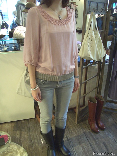 新作ブラウス!! こんなブラウスがほしかったぁ~!! という感じのフェミニンブラウスが入荷しました。 素材はテンセルとポリエステル、コットンのミックスで、吸湿も良く肌触りは抜群!! 7分袖で真夏の冷房、紫外線対策もばっちり。手洗い可能でパンツもスカートもバッチリ決まります♪ お色は肌を綺麗に見せてくれるパウダーピンク♪少し艶のある素材感がスタイリッシュな大人カジュアルを演出してくれます。 これから活躍間違い無しですよん。 ブラウス ¥ 11550 2010年3月9日