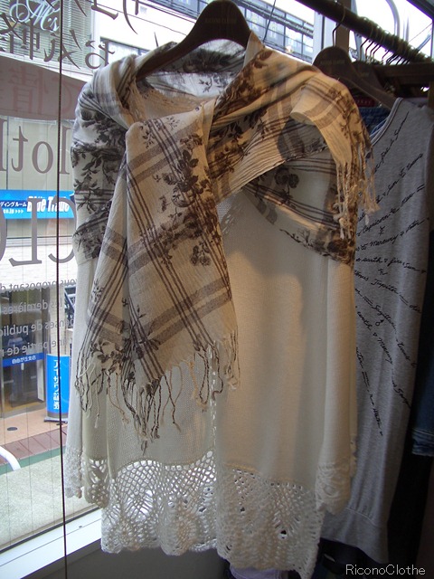 次は かぎ針のニットカーディガンにストールのコーディネイトです