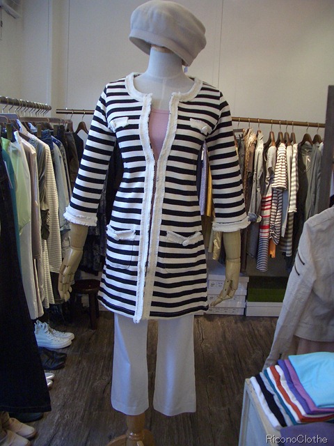 ボーダーロングジャケット♪ すっきりお洒落なボーダーのジャケット再入荷致しました。 コットン素材で着心地抜群です。 お色はお写真の黒に、ライトグレーとネイビーがございます。 ジャケット ¥ 12,075 インナー ¥3,045 パンツ ¥6,195 2010年4月18日