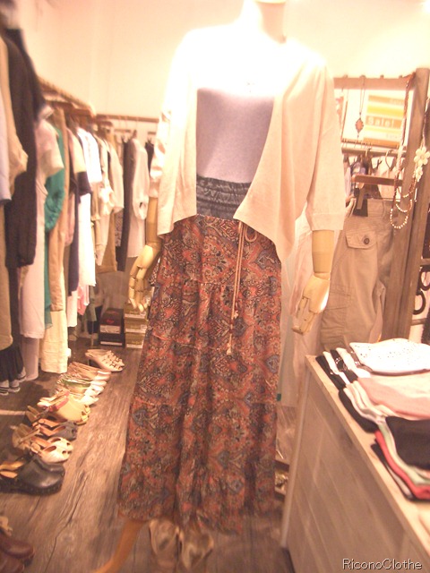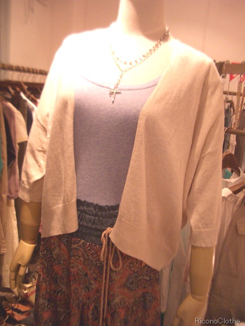 真夏のエスニックスカートコーディネイト♪ レーヨン素材のトロンとしたロングスカートはプリントが素敵な一枚です。 これから秋も引き続きご活用頂けます。 スカート ¥13,440 カットソー ¥2,520 カーディガン ¥4,410 新作ワンピース ¥ 13,440 2010年7月25日