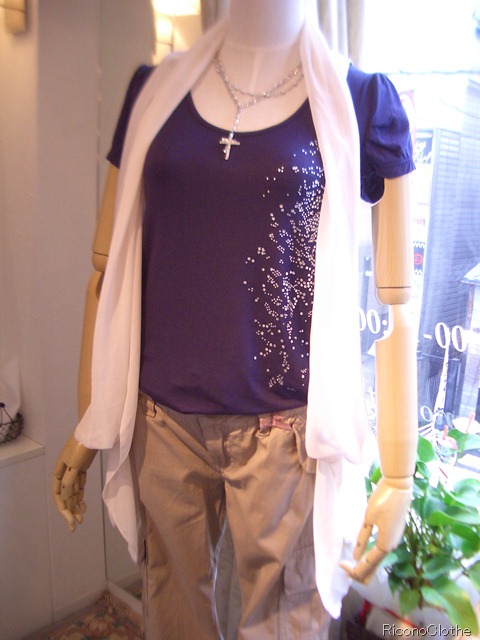 新作アイテムのご紹介♪ クリアビーズがデザインされた新作カットソー ¥4,725 エスニックプリントブラウス ¥7,245 英字プリントカットソー 白、グレー、ミントグリーンがございます ¥3、255 2010年7月31日