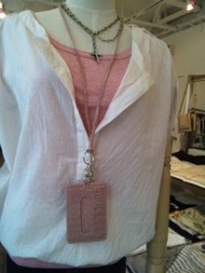 リコノ一周年記念プレゼント♪ リコノクローシェ一周年を記念して、本革のパスケースホルダーをお作りしました。 ベージュピンクの革にクロコの型押しが効いた上質な本革を使ってお作りしました。パーツにはリコノマークの花モチーフをデザイン。 パスケースやペンホルダーは革紐から取り外しが出来ますので、サングラスホルダー等他の用途にもお使い頂けます。 お買い上げ 15000円以上のお客様にプレゼント致しますので、ぜひリコノにお出かけくださいませ~♪ 数に限りがございますので 無くなり次第終了となります。何卒ご了承下さいませ。 2010年7月8日