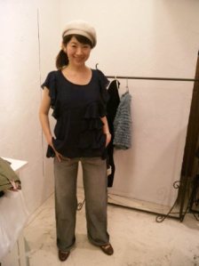 二枚目はネイビーの麻のカーディガンとコーディネート。こちらもシックでオススメです。