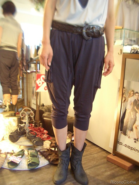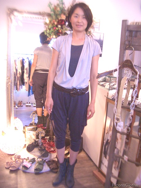 本日のコーディネイト♪ まだまだ暑さが続くと言われる今年の夏。 秋の雰囲気だけ取りいれた爽やかなサルエルパンツでコーディネイトしてみました。 トップスは大人気のカシュクールタイプのカットソーを合わせて、ベルトマーク♪ 足元はショートブーツで決めてみました。 いつものデニムからパンツを変えたらグッとスタイリッシュになりますよん。 でひお試しあれ~ カットソー ¥7,245 パンツ ¥7,245 ベルト ¥5,145 ブーツ ¥11,550 追伸 新作ブーツが入荷して参りました。 次回ご紹介いたしますね~ 2010年8月24日