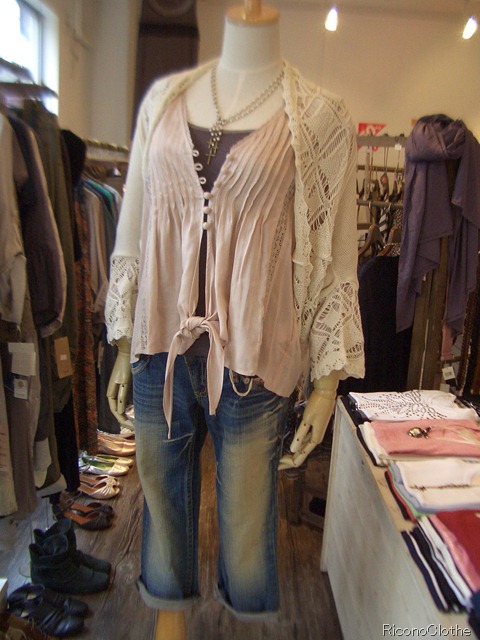 新作ブラウスカーデ♪ 本日のコーディネイトはサラッとしたレーヨン素材のブラウスカーディガンです。 インナーに重ねてブラウスに、又は前を開けてカーディガンとしてお使い頂けます。 お色はお写真のミルクベージュと、チャコールグレイになります。 晩夏も厳しいと言われるこの先、お役立ちアイテムですよ~♪ ブラウスカーディガン ¥ 8,295 デニム ¥ 15,645 2010年8月8日