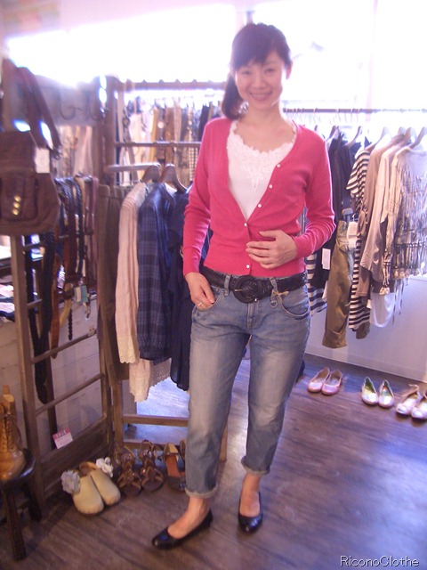 本日のお奨めはフランス企画のチェリーピンクのカーディガンです。