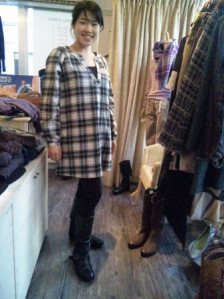 チェックのコットンチュニックのコーディネート♪ 起毛したコットン素材で着心地抜群のチュニックを 黒いスキニーパンツとブーツですっきり合わせたコーディネートです。 柄物のチュニックは パンツと靴の色を統一して すっきり着こなすと、上手に着れますよん。 チュニック6195円 パンツ 6930円 2010年10月17日
