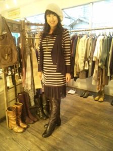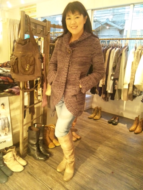 モカベージュのコートとブーツで、気分はパリジェンヌ♪って感じ〜 スカート
