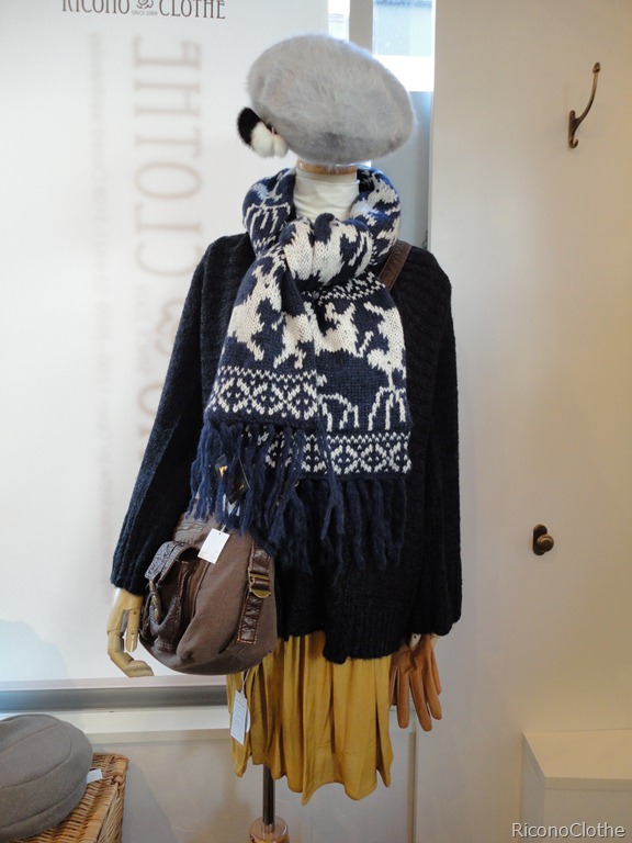 アンゴラベレー帽¥3675、 マフラー¥4725、 ニットカーデ¥8085、