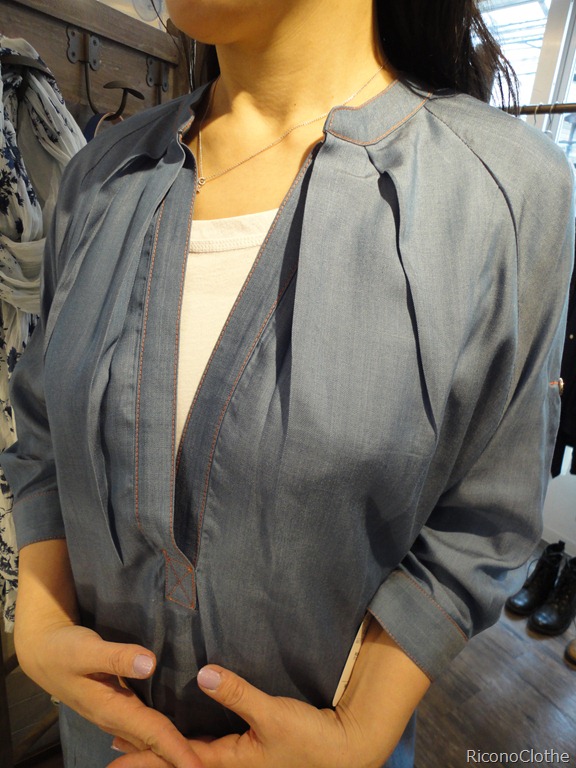 新作シャツワンピ♪ キレイなシャツワンピが入ってきました。 スレンダーなシルエットに見えるのは襟元の空きが絶妙だからです。 ブルーの生地にオレンジのステッチがとってもおしゃれです。 お袖も邪魔にならない7分丈。 お色はネイビーとブルーとございます。 シャツワンピース ¥13,650 2011年2月19日