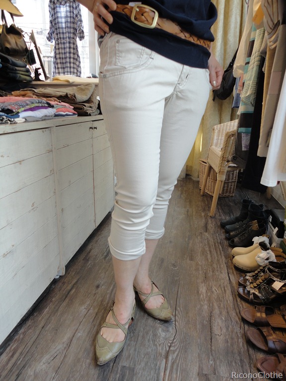 大好評のリコノ企画パンツが再入荷しましたぁ~!! とにかく はきやすい !! 細く見える !! ヒップが素敵な感じに 小尻に見える !! そして、、、、、なんたってサラサラコットンで 涼しい~っ!! 色違いで買われる お客様多数の大好評パンツが再入荷。 透けない白 引き締まり度抜群のネイビー 合わせやすいカーキの 3色です レギンス代わりにワンピースにだって合わせられます ♪ しつこいですが、、、、、こんなにはきやすいパンツありませ~ん 百聞は一見にしかず。 なくならない内に ぜひ チェックしてくださいね。 いつものスタイルが 垢抜けて見える救世主 !!ですよ~ コットンストレッチパンツ ¥ 7,350 2011年7月2日