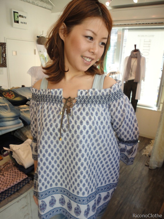 お奨めブラウス♪ リバティプリントのブラウスが入荷しました。 時には グッと肩を出して 女らしく着てみてはいかがでしょう? いつものデニムスタイルがガラッと変わりますよ。 お色は3色、写真の涼しげな白の他、可愛いピンクと シックなネイビーがございます。 お早めにどうぞ。 ブラウス ¥5145 イタリア製サンダル ¥12390 2011年7月20日