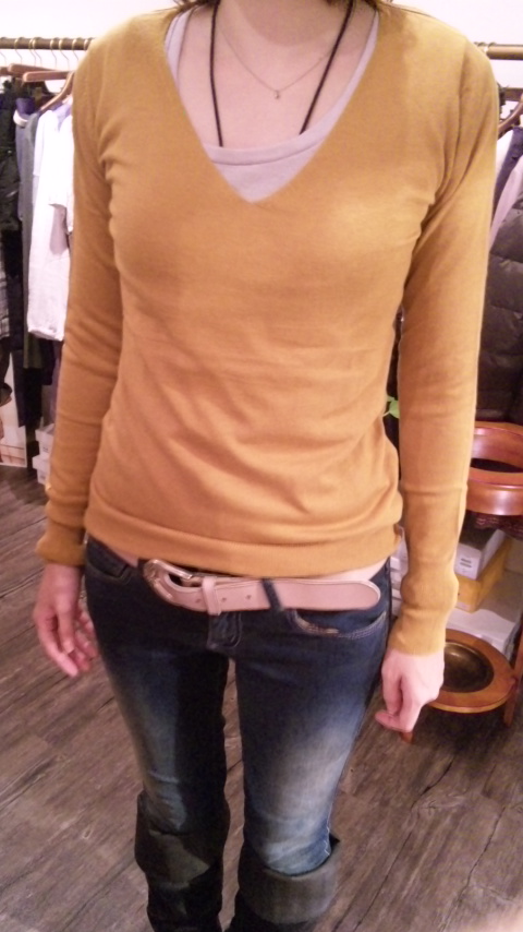 ベージュ×オフのカラーが優しい色合いのニットはイタリアから入荷。