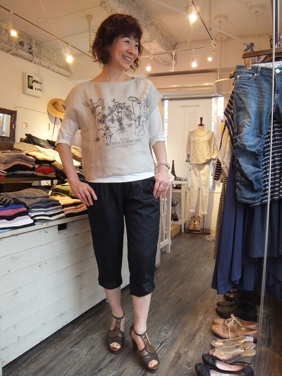 英字プリントTシャツ!!と チェックパンツ いよいよ 初夏の気温になってきましたね~ 自由が丘も爽やかなお天気で リコノにも 連休で沢山のお客様にご来店頂きました。 麻の羽織や おしゃれなTシャツの新作が大人気でした その中から 一押しのTシャツがこちらです。 センスの光るプリントに 着痩せ効果抜群の すっきりした襟開きとお袖。 バックはヒップの隠れる着丈。 更には テンセル100%のとろみのある素材感、、、、、、 上質な大人カジュアルには たまらない一品です お色は オフ白 ペールピンク サックスブルー ブラックの4色です Tシャツ ¥ 6,195 パンツ ¥ 10,500 2012年4月29日