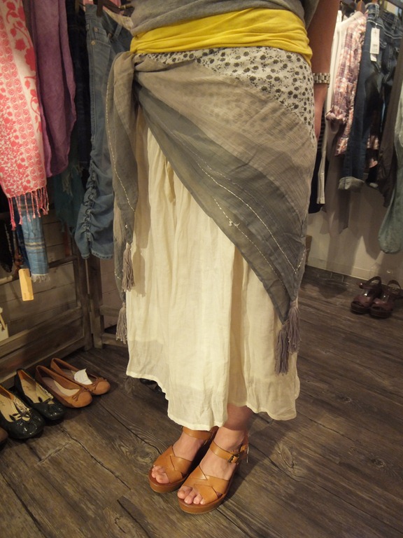 とっても柔らかい素材感で、流行のマキシ丈で履いてもよいし、胸からワンピースのように