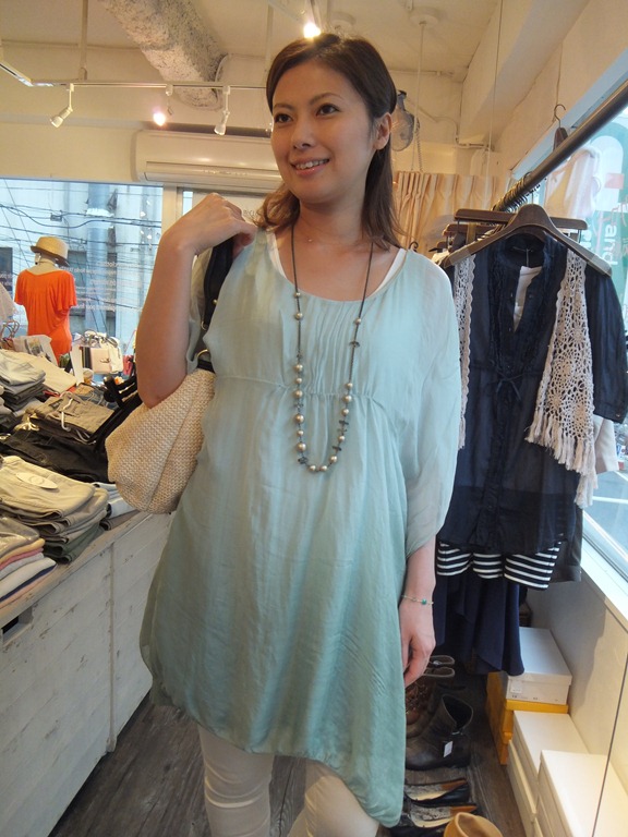 前身頃の丈より後ろの丈がちょっぴり長いデザイン。ピッタリとしたシルエットではないので、