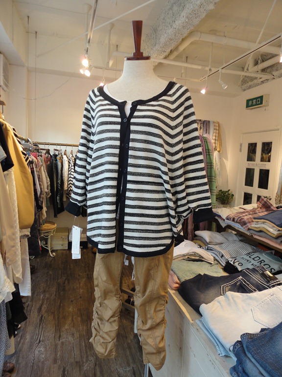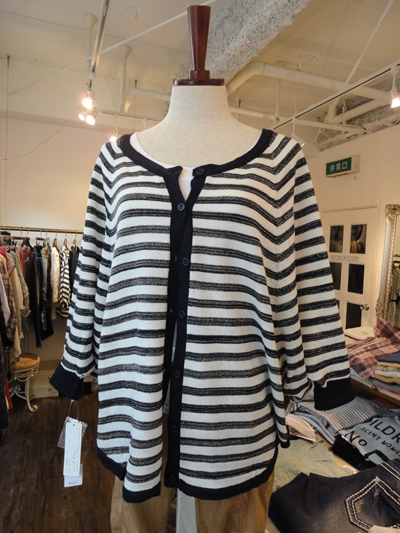 ドルマンニットカーデ! 着心地の良いドルマンニットカーディガン入荷しました!! 襟あきが大きめで、ラメも入っているのでとってもフェミニン♪ カジュアルめなパンツやデニムと合わせて、外した感じで着ていただくと とってもオシャレです!!ボタンを全て閉めてニットとして着ても可愛いですよ~! これからの時期、体温調節しやすいニットカーデは必須ですっ! ニットカーデ ¥7,245 パンツ ¥10,290 2012年5月8日