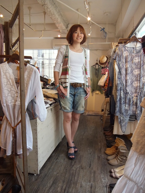 膝上の短すぎない丈なので、ショーパン初心者の方でも安心して履いて