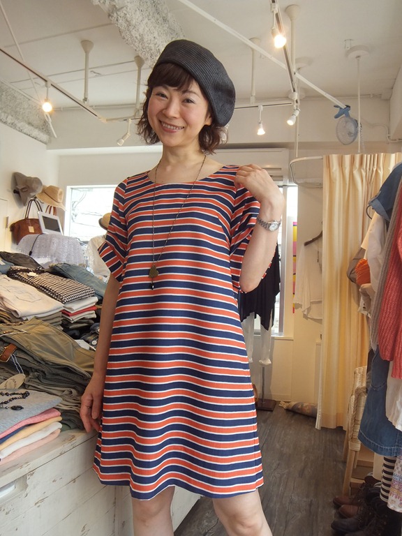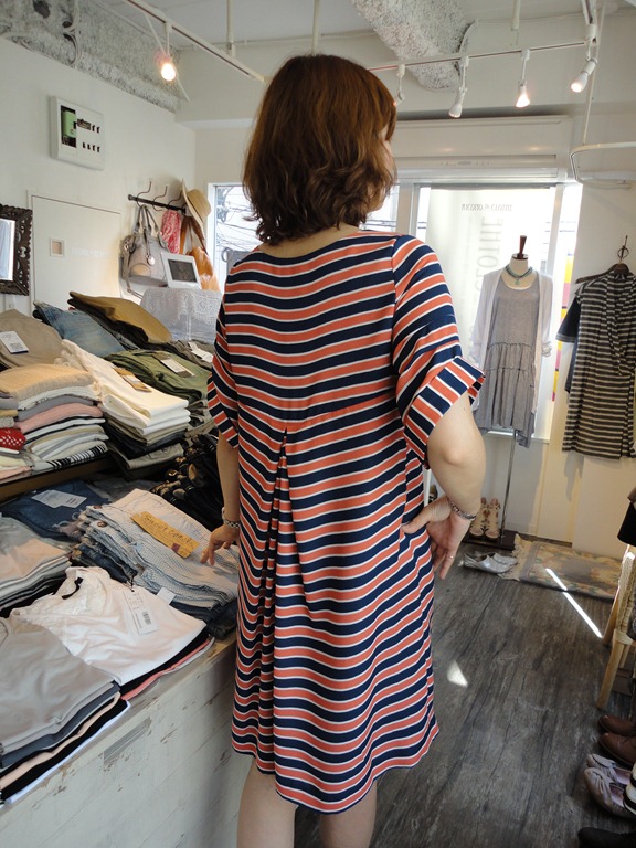 ネイビーとオレンジのボーダーが新鮮なワンピースが再入荷しました。