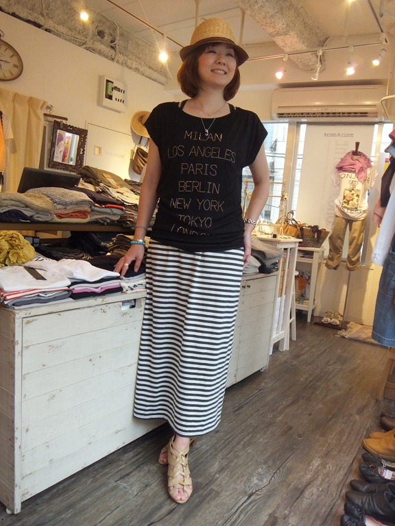 こちらは 適度なゆとりと生地感で ヒップに張り付か無いから 着痩せ感もバッチリ!!