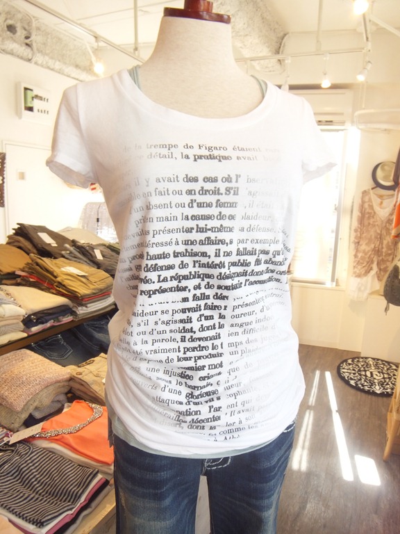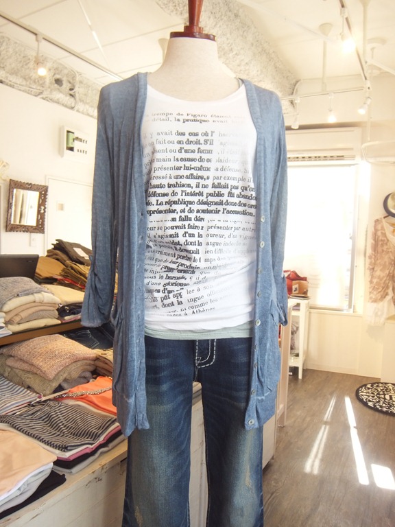 おすすめTシャツとカーディガン♪ そろそろ夏本番!着やすくプリントが素敵なTシャツは欠かせません♪ リコノにまたまた素敵なTシャツが入荷してきましたよ~!細身のシルエット なのですっきり素敵に着こなせます。プリントもかわいい~!! そして、電車のなかなどのクーラーよけに最適なカーディガンも必須です! サラっとしていて肌触りもよくコンパクトになるのでかなり便利ですよ~。 気になった方はぜひぜひお早めに♪ 英字プリント(細字)Tシャツ ¥5,985 英字プリント(太字)Tシャツ ¥6,825 カーディガン ¥5,985 2012年7月10日
