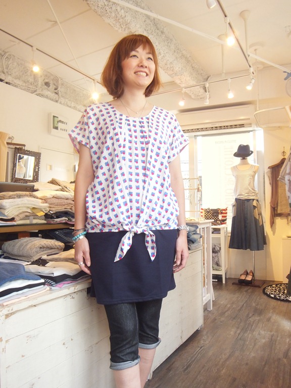 2枚目はピンクとブルーのコンビネーションが素敵なプリント生地に