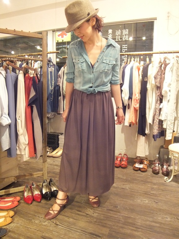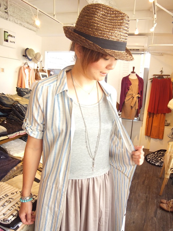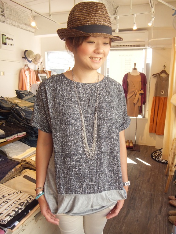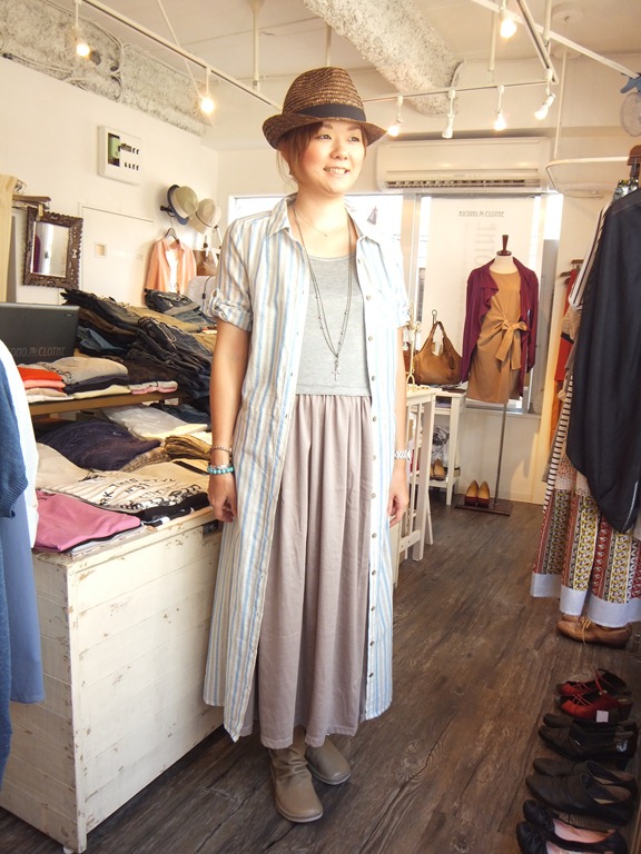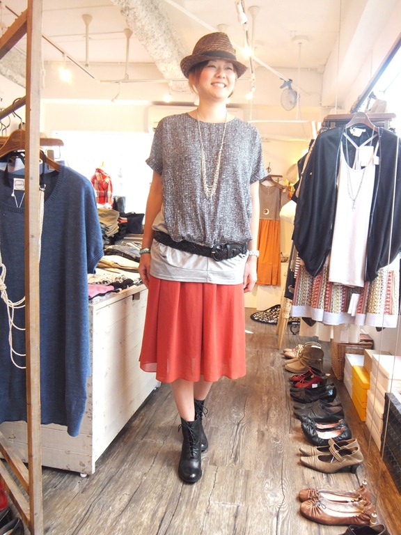 チュニックだとどうしてもパンツと合わせがちですが、スカートと合わせると