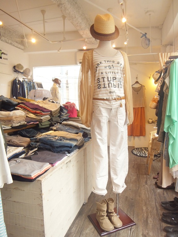 ベージュ&オフホワイトの爽やかコーディネイト♪ 織生地のおしゃれなコットンパンツが大変お買い得になりました~ 透け感も無く ヒップがキュッと小さく見える魔法のパンツ!! シックなベージュのボーダーにキャメルのカーディガンで 抜け感のある大人カジュアルの スタイリングです。 日焼けも防いで 夏のお出かけにもピッタリですよ Tシャツ ¥6,195 パンツ ¥ 7,200 SALE ベルト ¥4,095 カーディガン ¥7,245 2012年8月14日