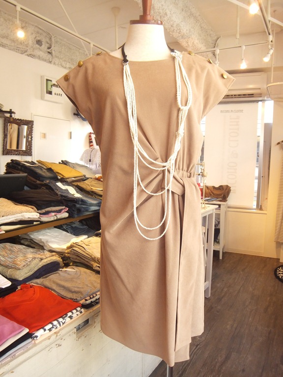 秋物ワンピース入荷♪ キャメルの素敵なワンピースが入荷してまいりました!! ウエストにリボンが付いていてシルエットがとっても綺麗なワンピースです♪ 膝上くらいの長さなので、下にレギパンを合わせても重くならないデザイン です。 しっかりした素材感で、ちょっとしたお食事などの場面にもサラッと着れて 便利ですよ~。 ワンピース ¥16,800 ネックレス ¥16,800 2012年8月24日