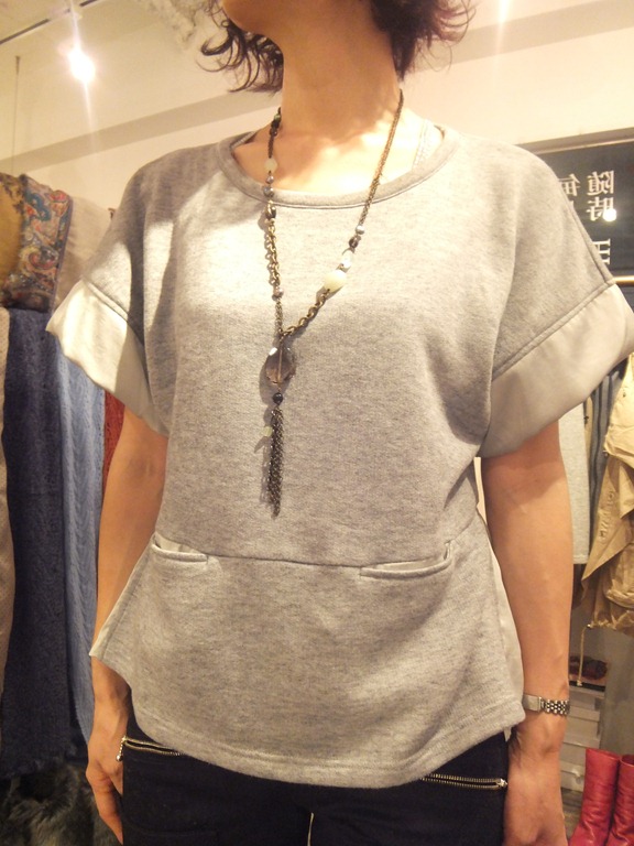こちらのブラウス、、、微妙なカラーのグレージュがとってもクールな一品です。