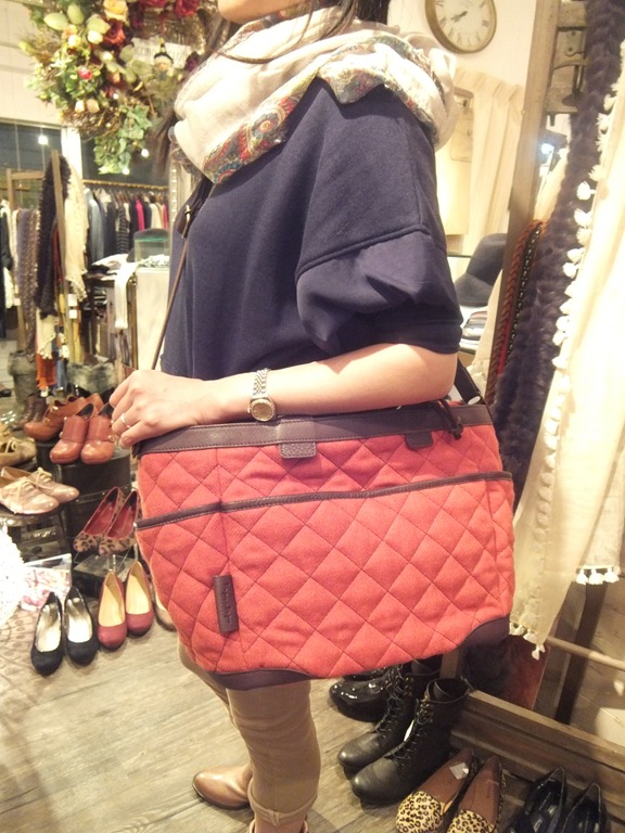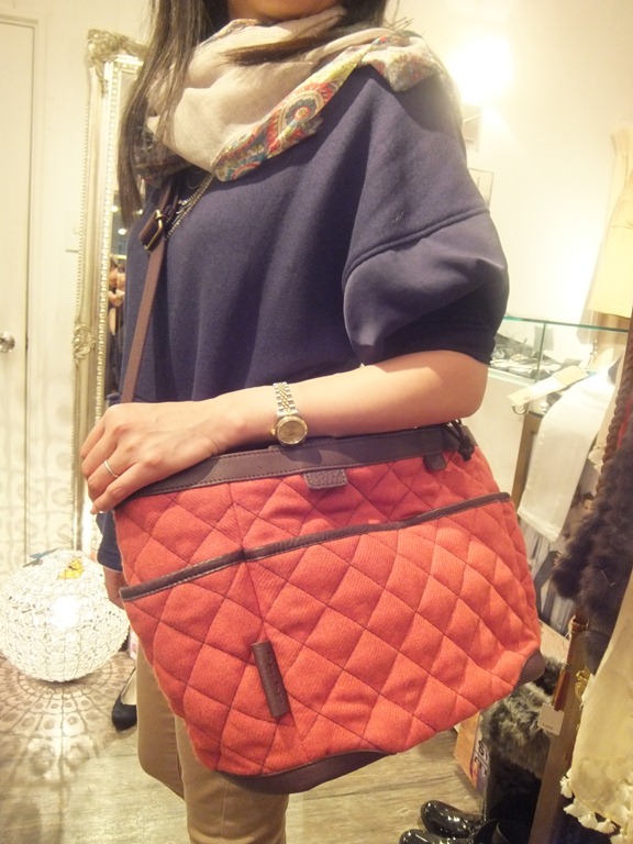 お洋服がシックな色使いなので ポイントにオレンジのバックをプラス♪