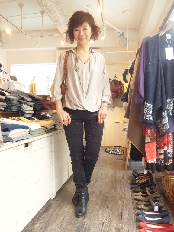 2枚目は昨日もご紹介したスキニーパンツに本日入荷のニコルのシャツブラウスでサラリとしたコーディネイトです。