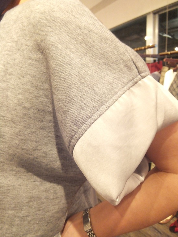 新作デザインカットソー♪ 少し丈短めなデザインのカットソーが入荷してきましたよ~。 袖と脇の下の部分にシフォンが付いていて、一味違ったカットソーです。 今回のスタイリングのポイントはところどころに黒で引き締めているところです。 黒が入る事によって、黒とキャメルの色がグッとオシャレにかっこよく見えてる と思います! 耳元のイヤリングもシルバーで合わせて、トータルコーディネートの出来上がり~! デザインカットソー ¥9,240 コットンパールイヤリング ¥1,890 2012年9月4日