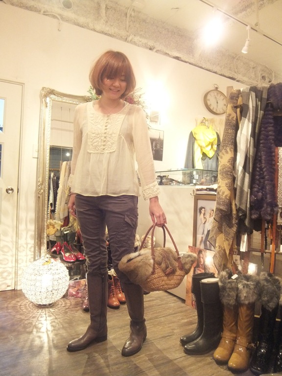 秋の刺繍ブラウスとカーゴパンツ♪ きゃーっ!! 待ってましたのニコルの新作ブラウスです~ 繊細な刺繍と 肌に馴染む生成りカラーがたまりません!! 何だか まだ暑い日々、、、ですが 気分はすっかり秋ですよね。 そんな時には やはり頼りになるブラウスが大活躍。 春まで待てないおしゃれさんに ぜひ着ていただきたい一品です。 刺繍ブラウス ¥12,600 カーゴパンツ ¥8,295 インポート牛革ブーツ ¥31,500 2012年10月5日