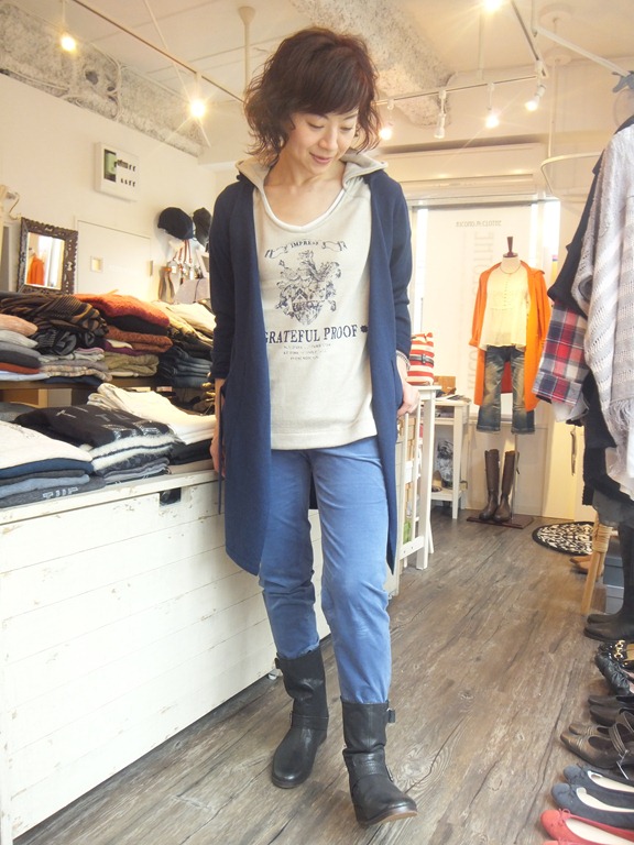 ブルーパンツコーディネート♪ キレイなブルーのコーデュロイパンツが入荷してきました!! カラーパンツでしかもストレッチの効いたあったか素材♪シックなコーディネート のワンポイントにいかがですか?? ブラックはもちろん、ベージュ系のトップスとも相性良いです。ロイヤルブルーの ニットカーデを羽織ると絶妙な色の組み合わせで素敵ですよ~! カラーはブルーの他にオレンジもございます♪ ブルーパンツ ¥12,600 2012年10月16日