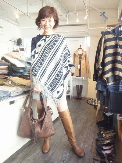 エスニック柄ニットポンチョ♪ エスニック柄の素敵なポンチョが入荷してきました~! ネイビーとグレーの上品なポンチョで、今の時期とっても活躍しそう♪ デニムとのコーディネートもバッチリ!! そんなに分厚くないので、ニットのように着ていても素敵ですよ~。 残り僅かなので、気になった方はお早めに♪ ニットポンチョ ¥8,295 2012年11月13日