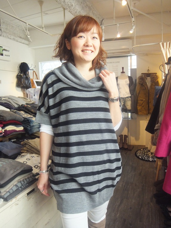 ボーダーニットチュニック 大特価!! カジュアルなボーダーニットチュニックのご紹介です。 サラッとした着心地で 春先の冷たい風もへっちゃらです!! モノトーンの配色なので カラーコートのインにもバッチリ♪ 他にも まだまだお役立ちのお得なアイテムが満載です 今週末ぜひぜひ リコノにお出かけくださいませ~ ニット ¥ 7,350 スェードブーツ ¥ 7,000 大特価!!早いもの勝ちでーすっ 2013年1月31日