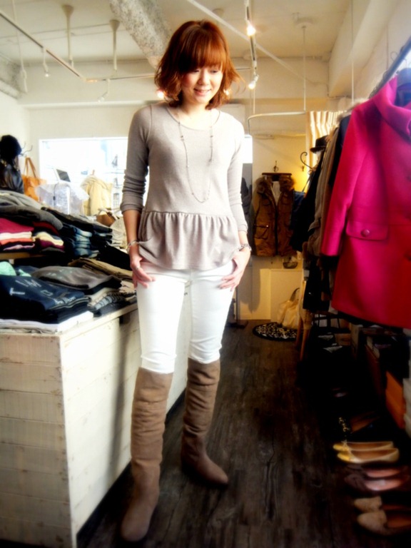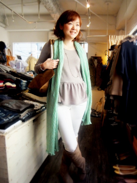 春も使えるぺプラムコーディネート♪ 白パンとぺプラムトップスのコーディネートのご紹介です。 ウエストで切り替えしてフワッとしたシルエットが特徴のぺプラム。 パンツとニーハイと合わせるとかなり足長に見えますよ~!! 全体的にフワッとした色に差し色のキレイ色グリーンのストールを 合わせるとオシャレ度がグッと上がりますよ~♪ ぺプラムトップス ¥5,070 パンツ ¥12,600 ニーハイブーツ ¥15,750 ストール ¥5,810 2013年1月29日
