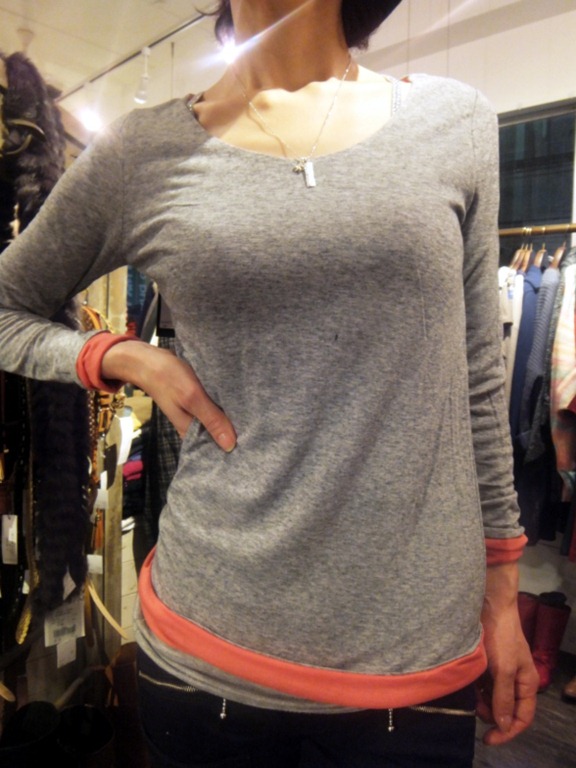 リバーシブルカットソー特価です♪ 着心地の良いリバーシブルカットソー特価で~す!! お色は、ブラック×アイボリー、ピンク×グレー、ベージュ×アイボリー の4色展開です♪ 2枚仕立てなので、インナーにしても暖かですよ~! お早めに~。 リバーシブルカットソー ¥5,800 2013年1月28日