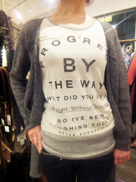 お奨め デザインカットソー♪ 皆様 こんばんはですぅ~ お正月はいかがお過ごしでしたかぁ? 本日より リコノクローシェ 初売りSALEを開催しております。 今年も宜しくお願い申し上げます~ 新春企画の ¥10、000のダウンジャケット!! や 足がめちゃ細く見える あの スキニーカーゴパンツも値引き販売中~!! なので~ ぜひ 見にいらして下さいね~~ 心よりお待ちしております~ カットソー ¥ 5,790 ニットカーディガン ¥ 8,820 スキニーカーゴパンツ ¥12,285 10%OFF 2013年1月5日