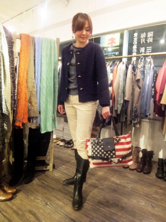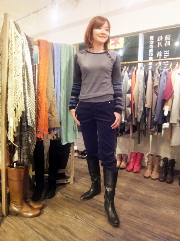 コーデュロイパンツコーディネート♪ ピタッとしすぎないコーデュロイパンツのご紹介です。 ヒップもピッタリしないので、短めトップスでもお尻周りが 綺麗に見えます♪ ブーツインして着るとジョッパーズっぽい雰囲気になって かっこよいですよ~!! お色はアイボリー、ライトブルー、ブルー、ネイビー、の 4色です! コーデュロイパンツ ¥8,820 ニット ¥5,070 ブークレジャケット ¥11,490 2013年1月11日