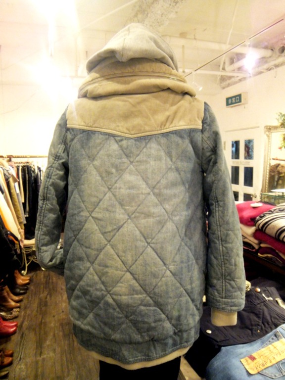 中綿デニムコート特価で~す♪ 軽くて着心地の良い中綿のデニムコートが入荷して来ました~!! 中綿なので暖かく、色は薄いデニム色なので春先まで着れちゃいますよ~♪ ボディーが着ているコーディネートは下にグレーのカジュアルパーカーを合わせて 着せています。後ろから見るとフードがちょこっと見えて可愛い♪♪ この素材感でこの価格はかなりの特価です!!! 中綿デニムコート ¥18,900 2013年1月17日