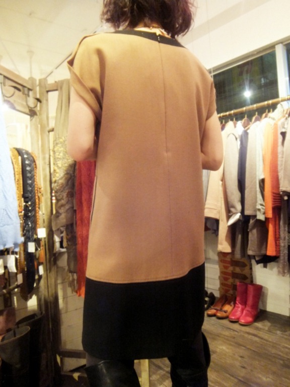バイカラーワンピース♪ 裾と首周りがブラックのバイカラーワンピース。 写真ではそのまま着ていますが、今の時期はインナーに ブラックのカットソーを合わせて着ると素敵です♪ 着丈も短すぎず、長すぎずでスッキリ、シンプルに着こなせますよ~。 バイカラーワンピース ¥13,230 2013年1月18日