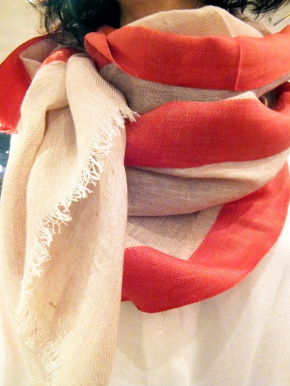 白ブラウスと新作ストールのコーディネート♪ 爽やかな白のブラウスにベージュとオレンジのバイカラーストールとの コーディネートです♪ カーディガンのベージュとストールのベージュがリンクし、なおかつ フラットシューズのオレンジとストールのオレンジがリンクしている 絶妙な色使いで技ありコーディネート!! この春一押しバイカラーシリーズをうまく活用して、ファッションのアクセントに してみてくださいね~。 ストール ¥7,245 ブラウス ¥8,295 バイカラーフラットシューズ ¥7,245 2013年3月2日
