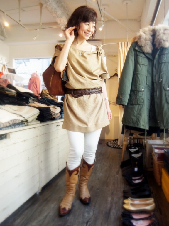 新作チュニックワンピース♪ ポリエステル100%の素敵なチュニックワンピースが入荷しました! 麻の風合いに見える上質なポリエステルで、サラリとしていて扱いやすい チュニックワンピ。 太めのベルトとコーディネートすると締まった印象に・・・。 茶色のバッグで雑貨の色をリンクさせるととてもオシャレですよ~♪ ワンピース ¥17,850 ベルト ¥5,775 バッグ ¥29,400 2013年3月7日